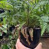 The White Rabbit Foot Fern (Davallia tyermannii) is a charming and distinctive epiphytic fern known for its unique furry rhizomes that creep across the surface of its growing medium, resembling rabbit's feet. These fuzzy, white to silvery-grey rhizomes create an interesting contrast against the delicate, lacy fronds that are a bright, fresh green colour.